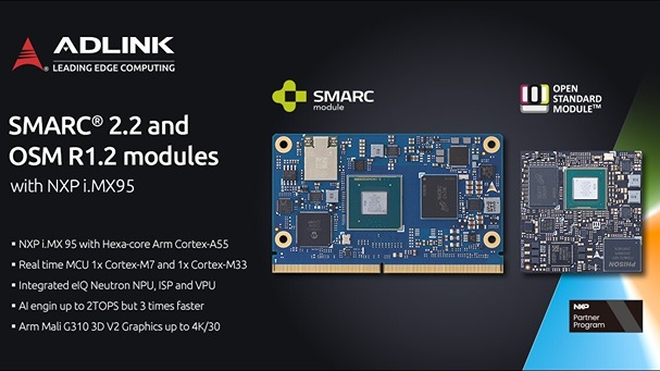 ADLINK Technology Inc. prezentuje swoje najnowsze moduły IMX95 oparte na NXP, zasilane najnowocześniejszymi rozwiązaniami NXP i.MX 95 rodzina procesorów aplikacyjnych. Zaprojektowane, aby sprostać wymaganiom sektora lotniczego, motoryzacyjnego, komercyjnego IoT, przemysłowego, medycznego i sieciowego, moduły te zapewniają potężne połączenie wydajności, bezpieczeństwa i wydajności – wspierane przez gwarantowany 15-letni cykl życia produktu, aby zapewnić długoterminową dostępność i stabilność.